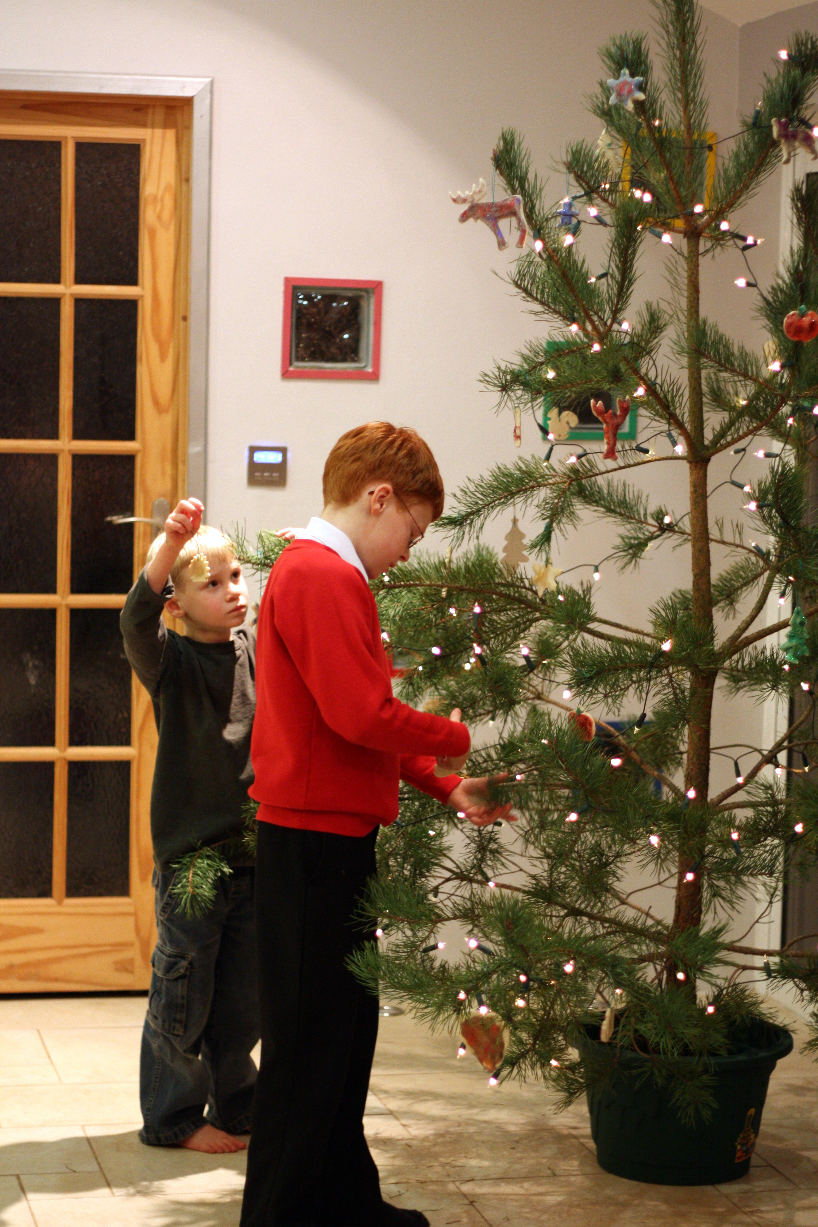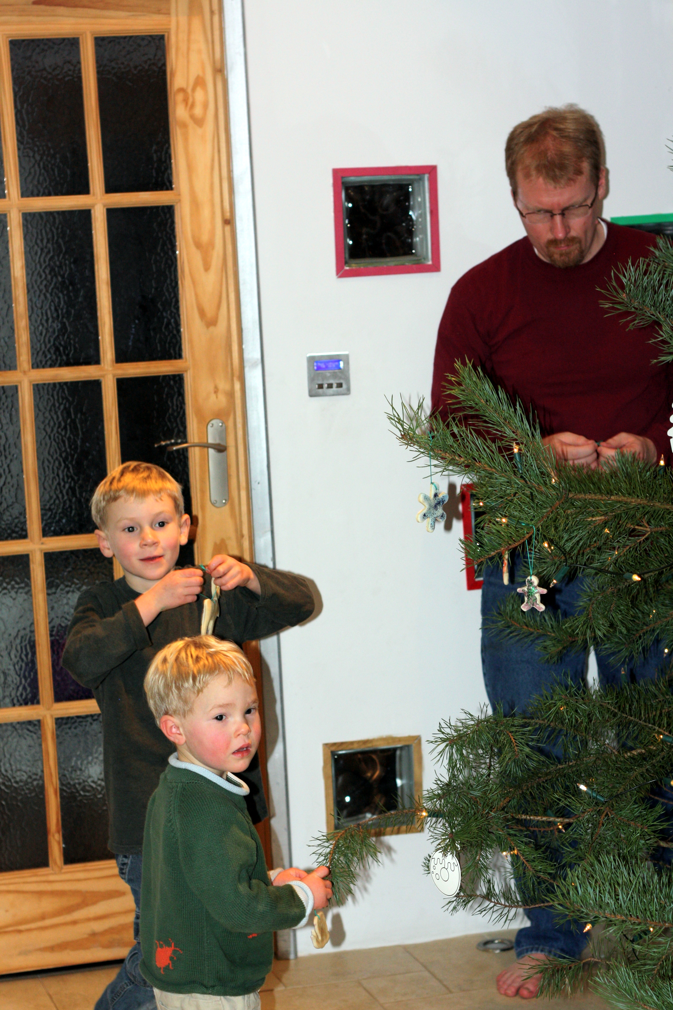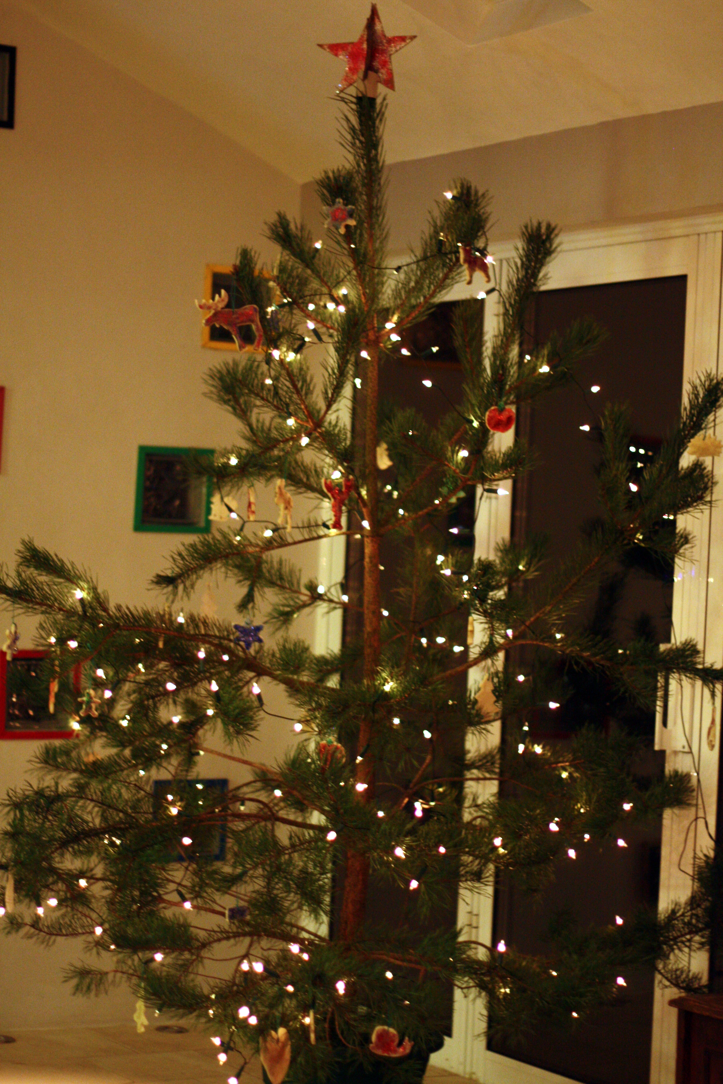 Back at Tree Shadows, we added lights and our fantastic home made ornaments.