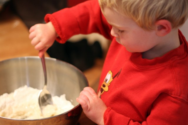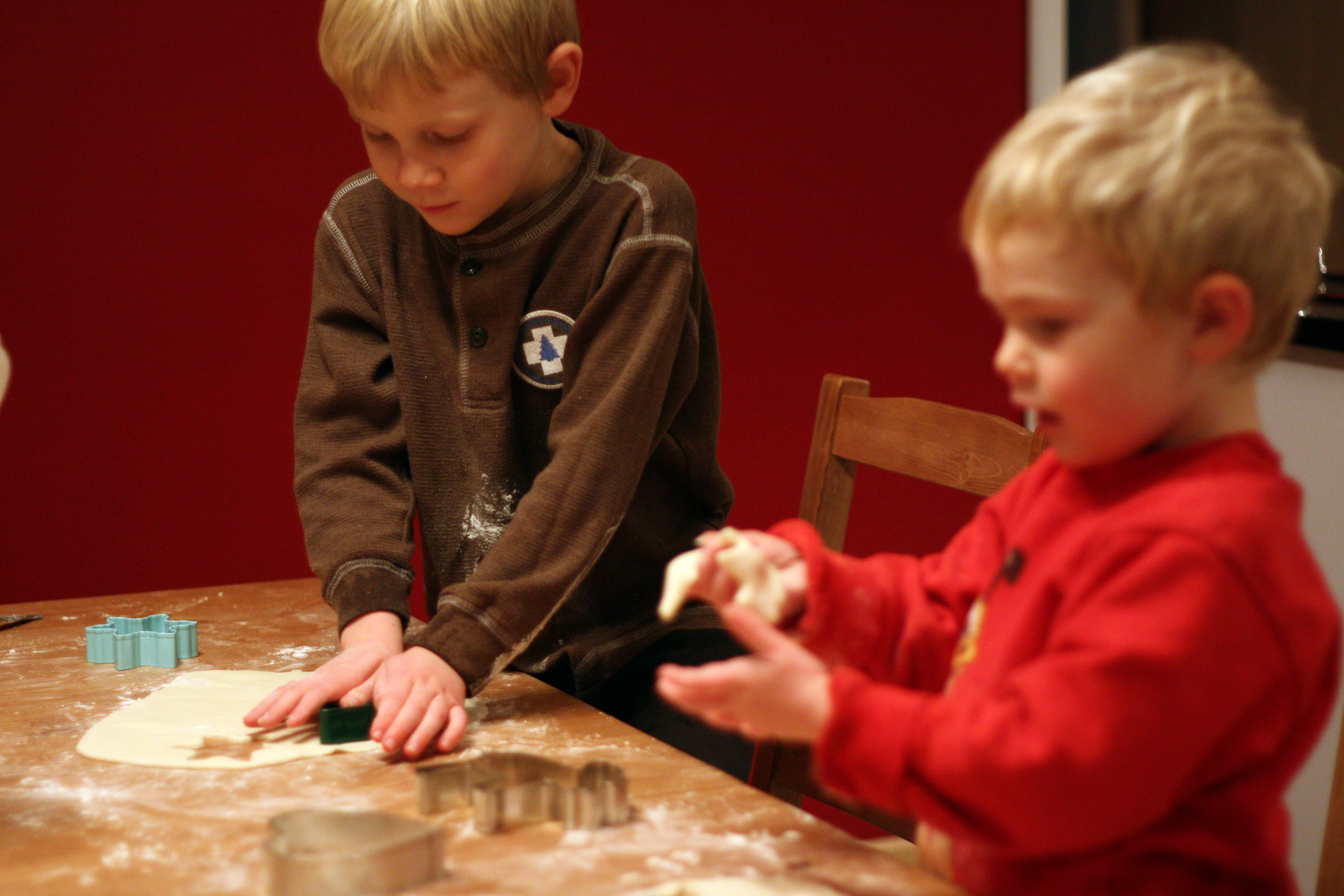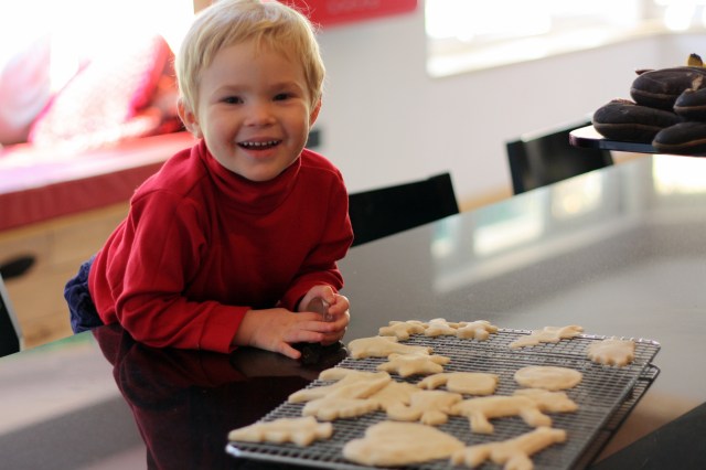 When we packed for England we had to take only the essentials, and sadly all of our Christmas decorations didn’t make the cut. To decorate our tree, the boys and I made salt dough ornaments. I’d been thinking about making gingerbread cookie ornaments, but I realized that more cookies would likely be eaten than would make it to the tree!