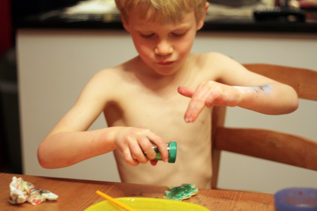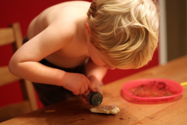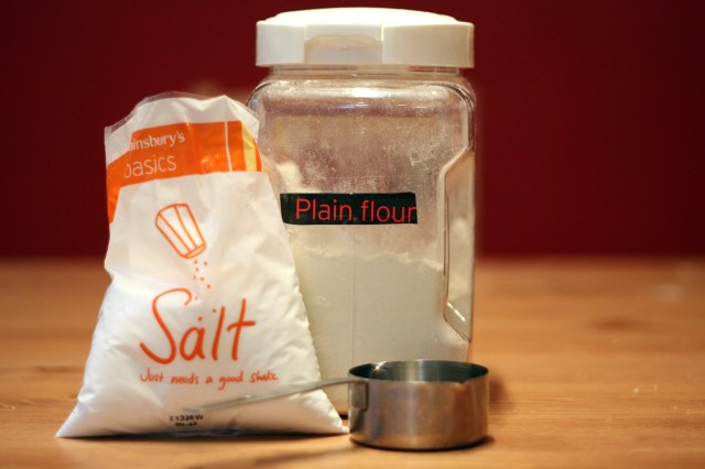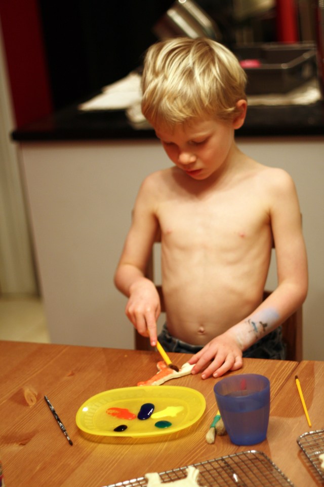 Salt dough is really easy to make and fun to do with children. There are recipes posted all over the Web, and I pretty much followed this one here.
