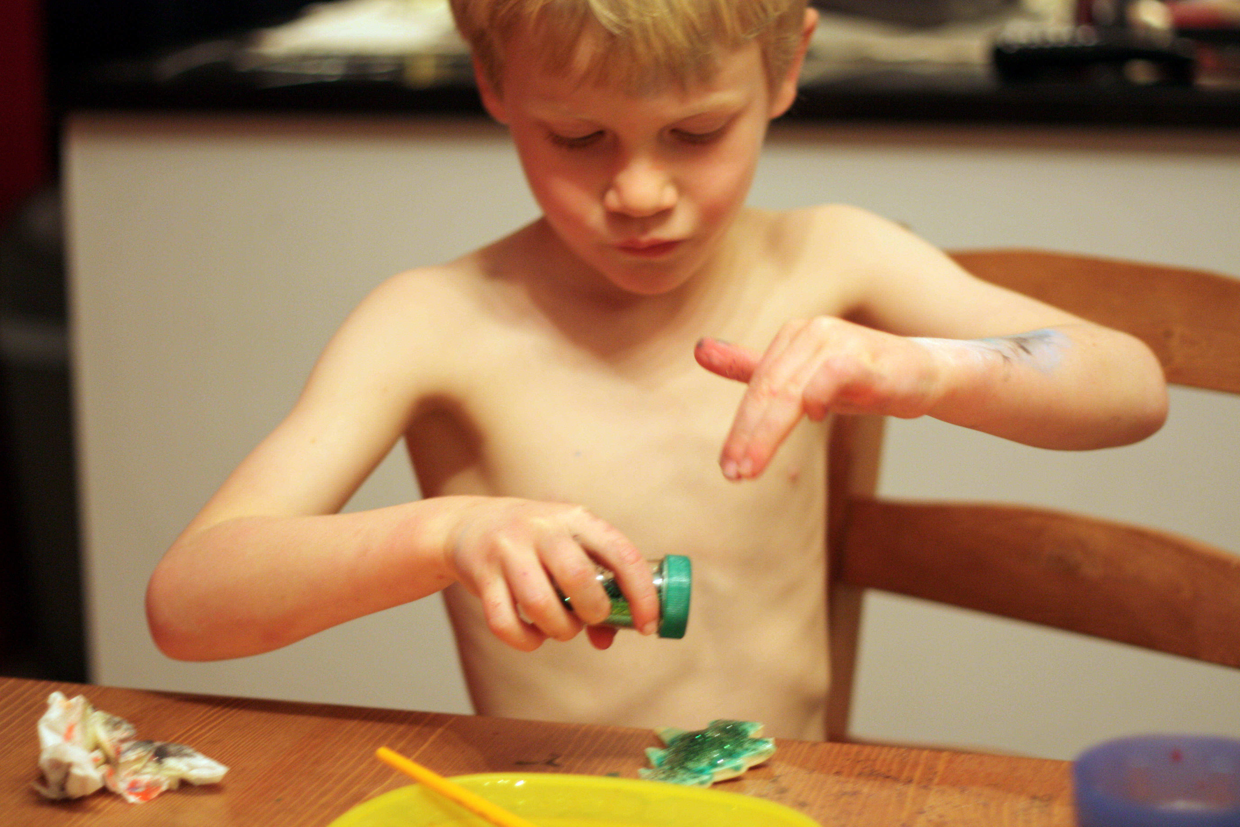 While the paint was still wet, we added the all-important glitter.