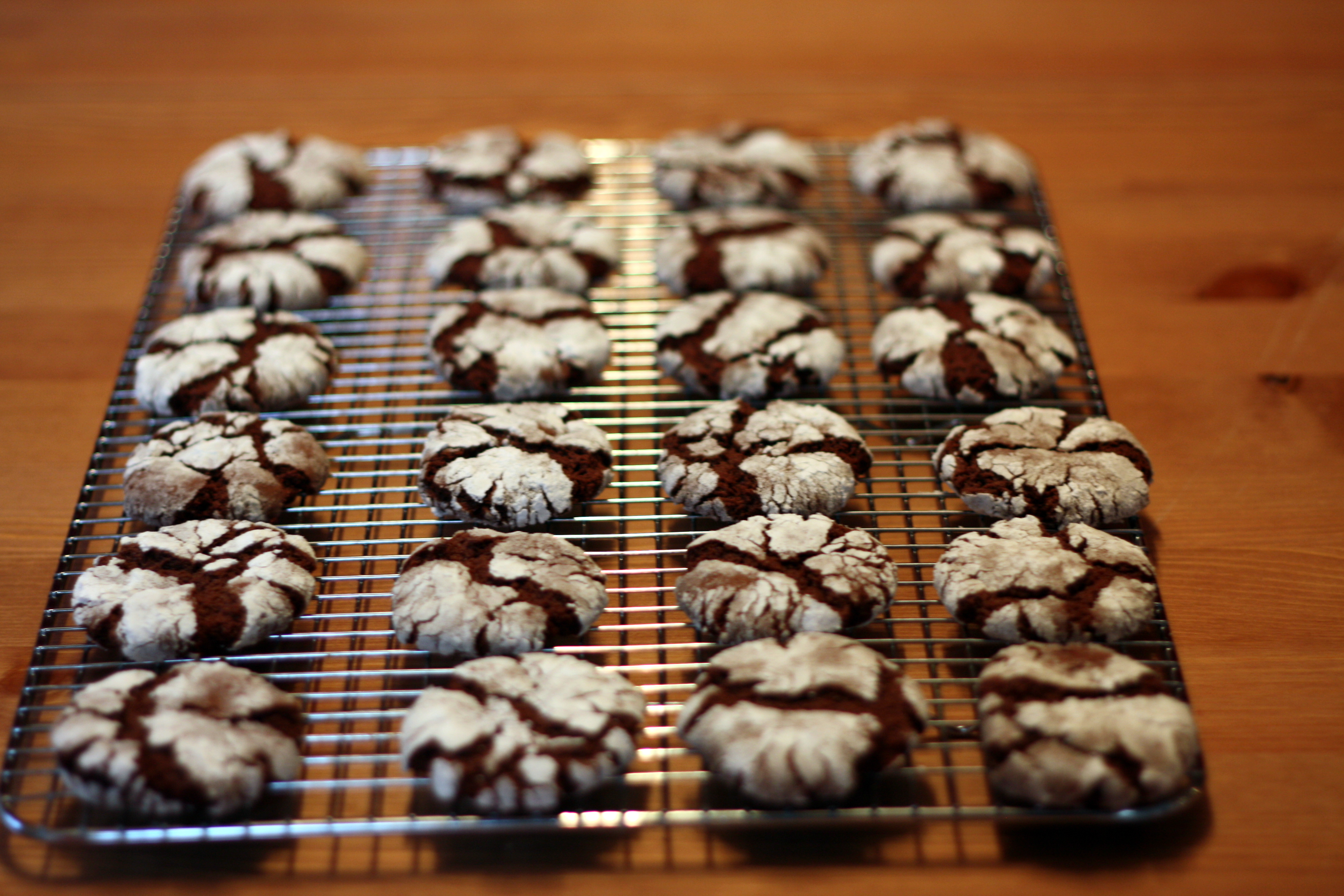 The first recipe is for Chocolate Crinkle Cookies. I was hoping for a really rich and chocolaty cookie with a nice sugary coating, and this fits the bill. Real dark chocolate makes the difference, I think.