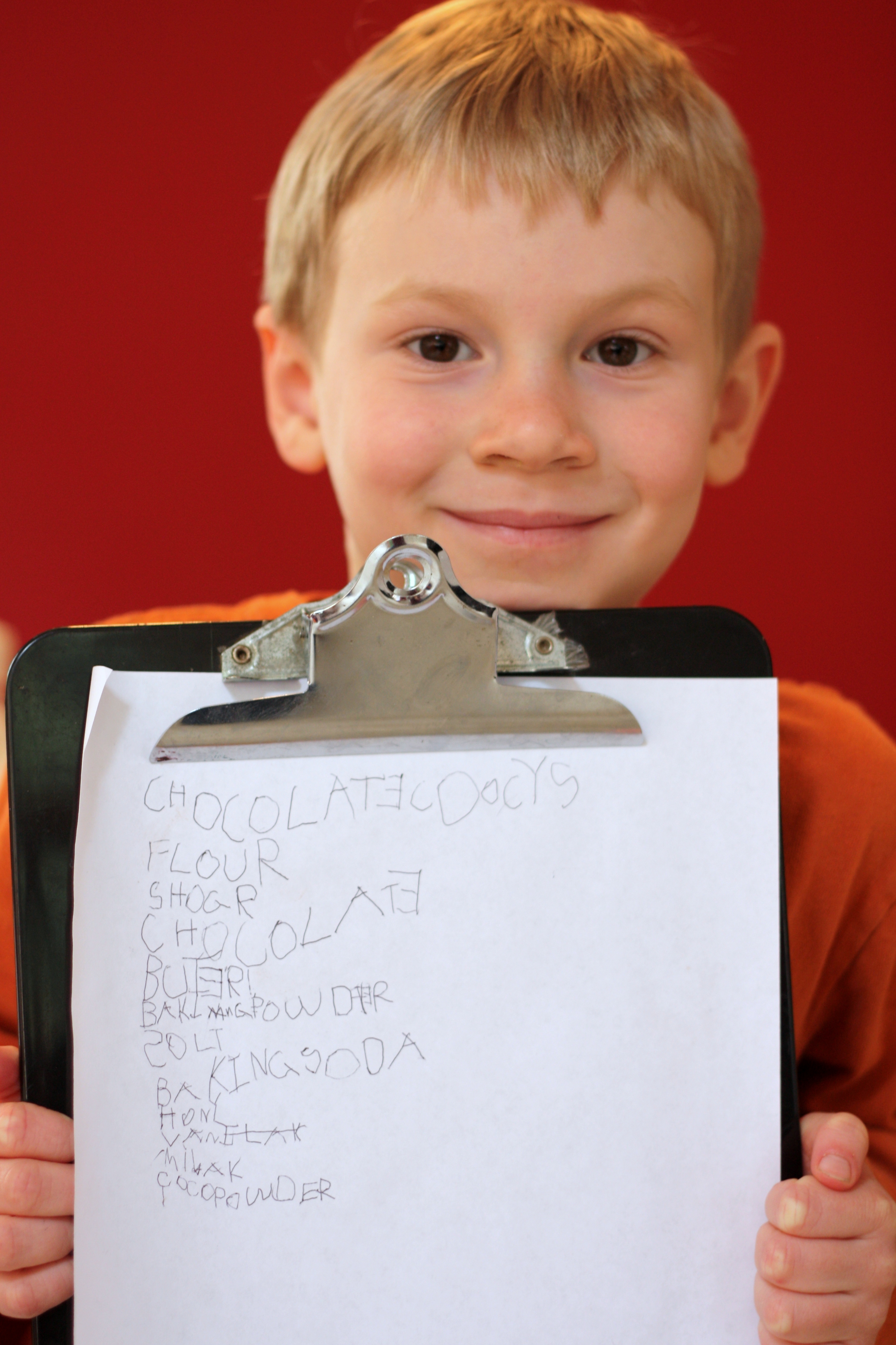 Lately Tommy has been quite interested in sounding out letters, and he worked very hard to write out the recipe for these cookies.