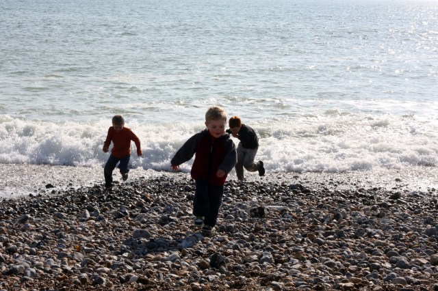 Towards the end of the month, we took a little drive to the southern coast of England.  We thought we’d stop and explore the town of Brighton for a bit, but when we got there we decided we’d all prefer a less citified beach experience so we continued driving along the coast.  We eventually found a pretty spot with a rocky beach.  We relaxed, had a snack, and some of us got a little wet!
