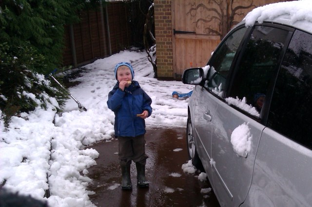 February started off with some snow.  This pleased the boys greatly and they really enjoyed being able to play in it.  It also was amusing to see how a little bit of snow can really slow things down over here.  The snow didn’t last long, and by the end of February we were beginning to see hints of spring arriving.