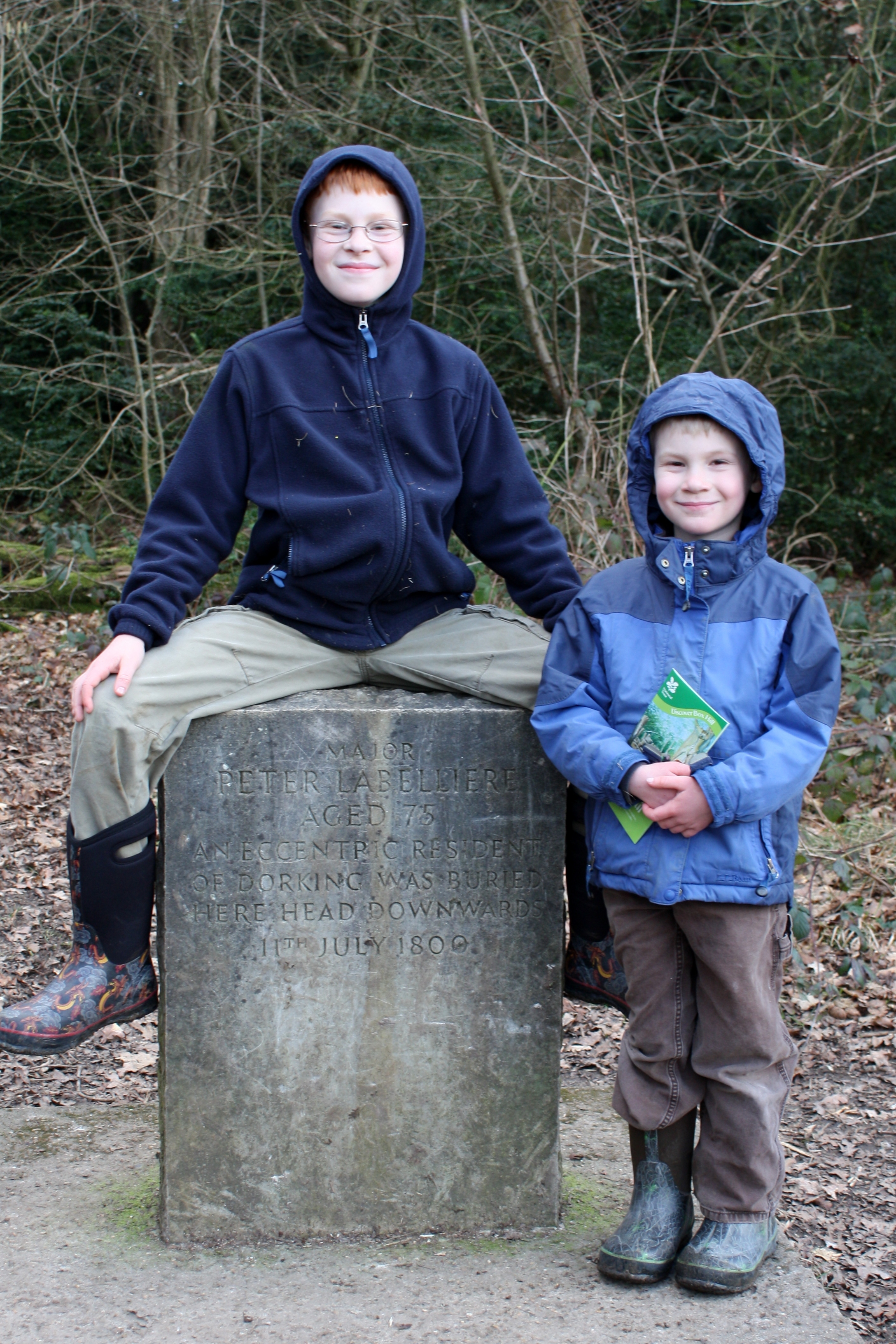 This is the grave of Dorking eccentric Peter Labilliere. He apparently requested that he be buried upside down here at his favorite spot on Box Hill. The story goes that he felt the world was so topsy-turvy that one day he would be right side up.
