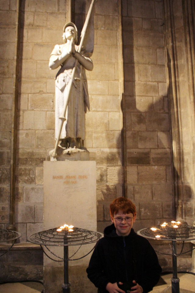We lit a candle in front of the Joan of Arc statue in Notre Dame.