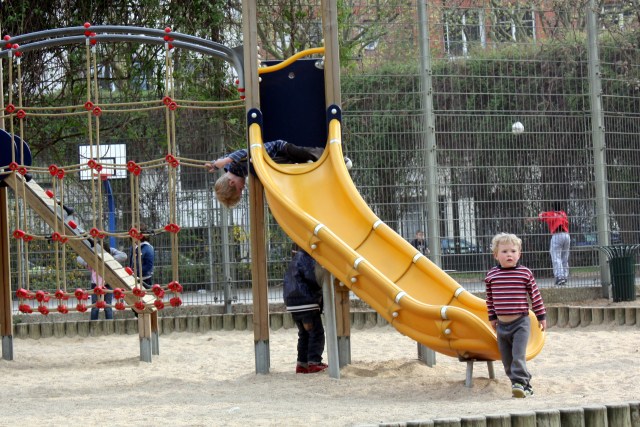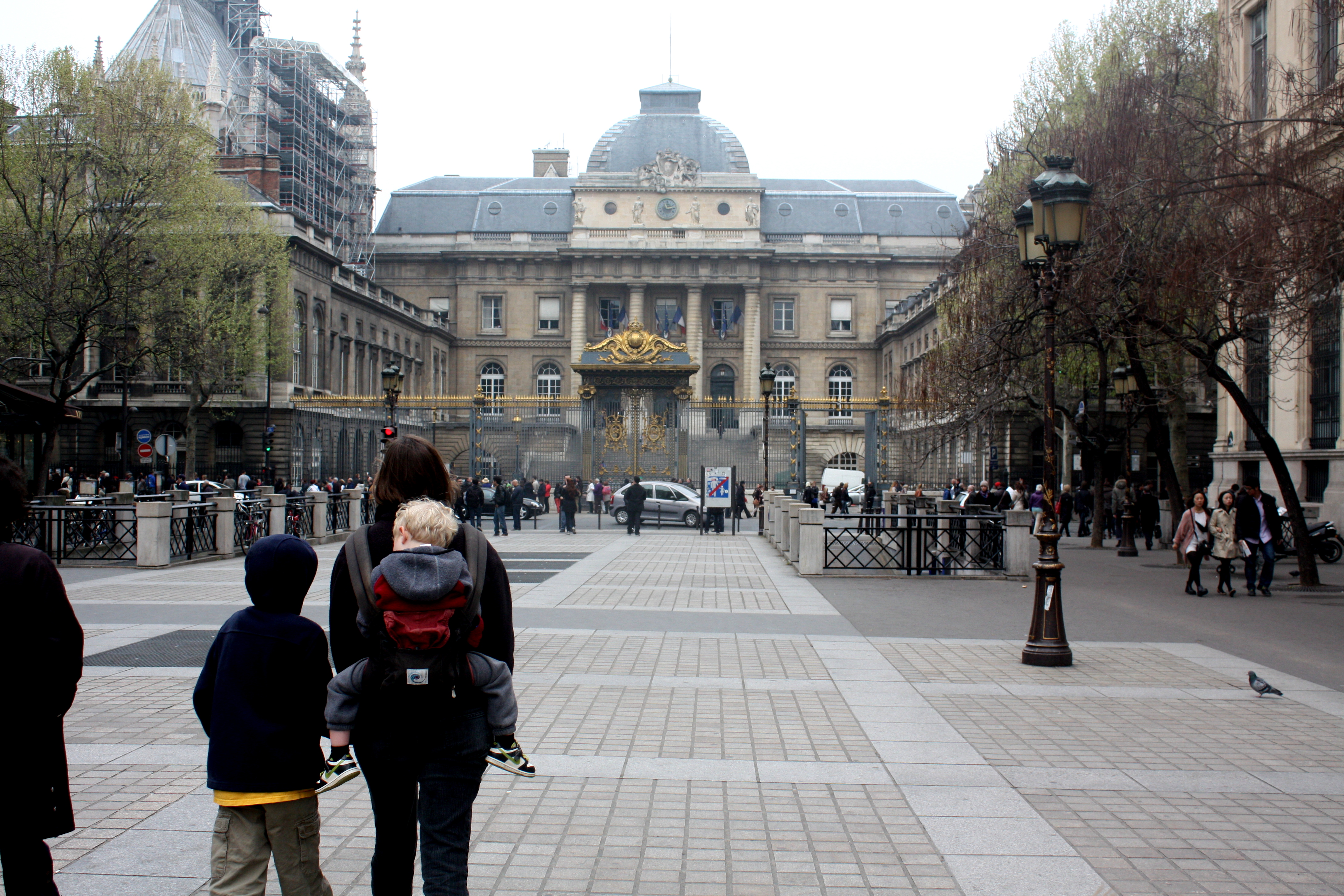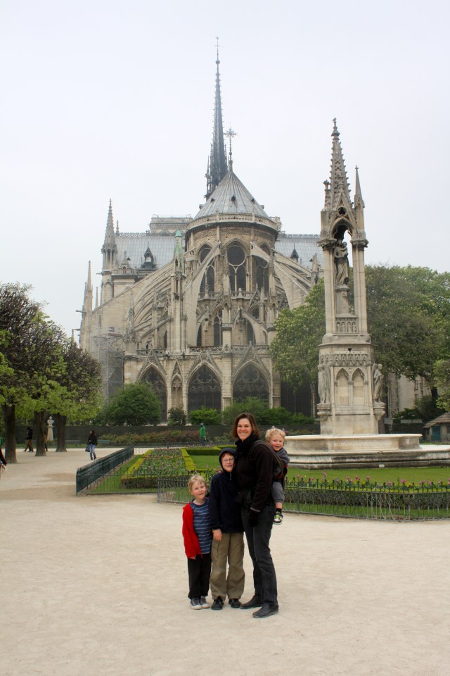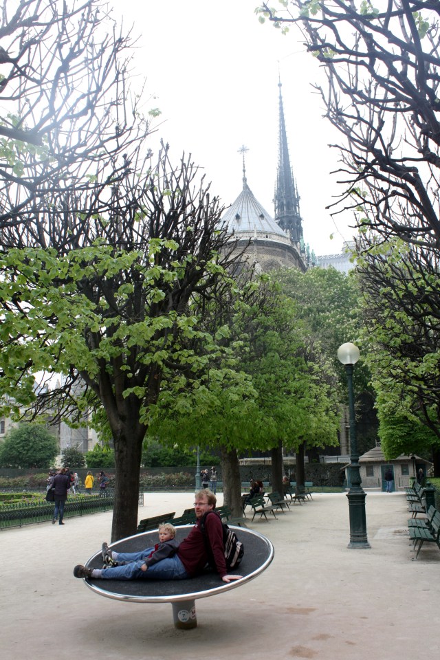 Since we never pass up a playground, we spent a few minutes at the little park in the shadow of Notre Dame.