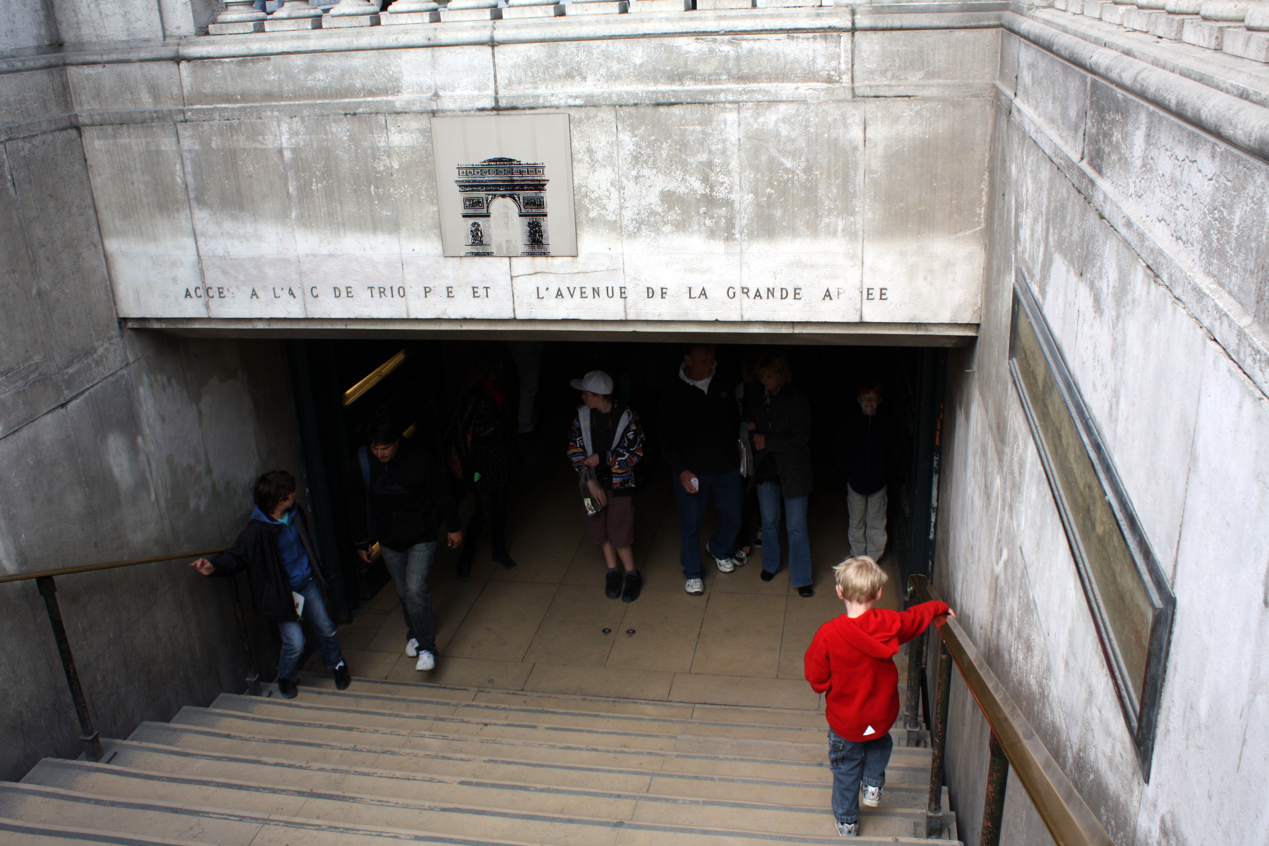 Heading down to the walkway under the roundabout to get to the Arc de Triomphe.
